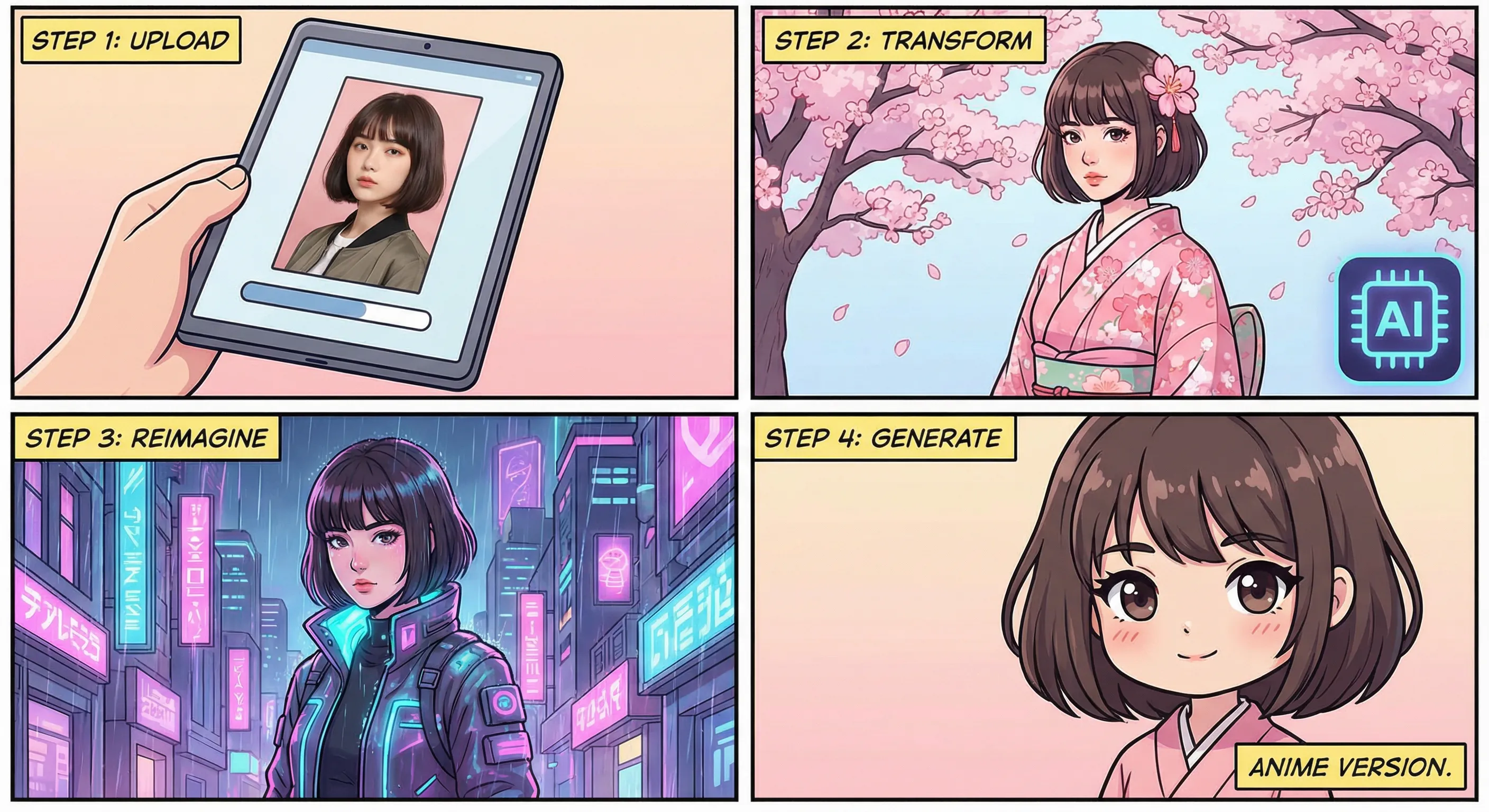 Wil je een fotorealistisch personage veranderen in cyberpunk? Ghibli-animatiestijl? Pixel art?